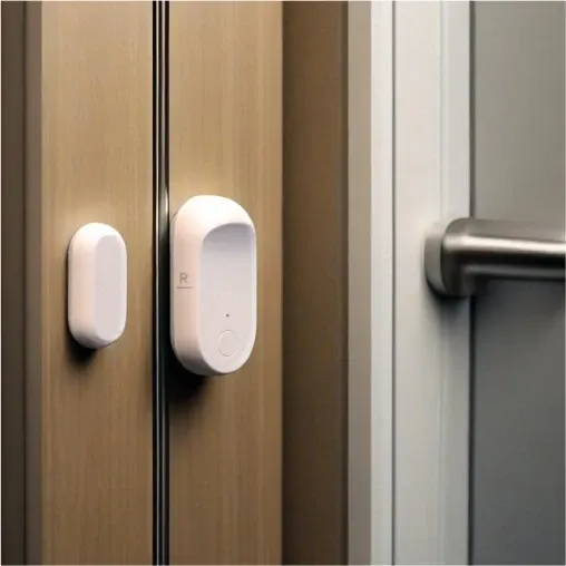 由两部份组成:一部分安装在门窗框上,另一部分安装在门窗本身上。 一旦门窗被打开,传感器便会触发警报信号。