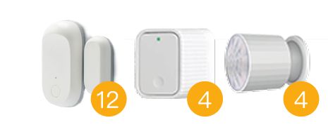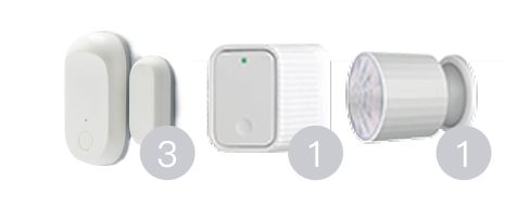 每套包含:蓝牙网关 x 1、动作感应器 x 1、门窗感应器 x 3