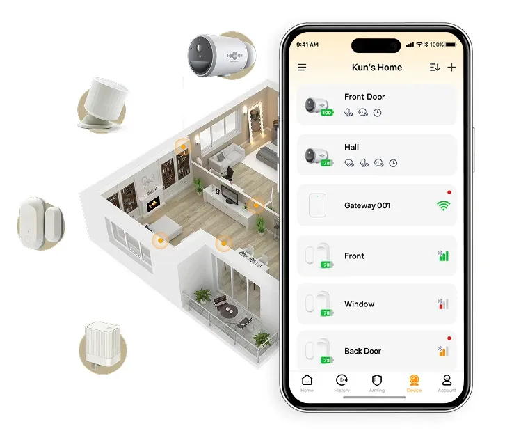 为您的家庭提供全面的保护。 对家中重要区域进行检测,实时进行App端反馈,让你第一时间得知家中安全情况。