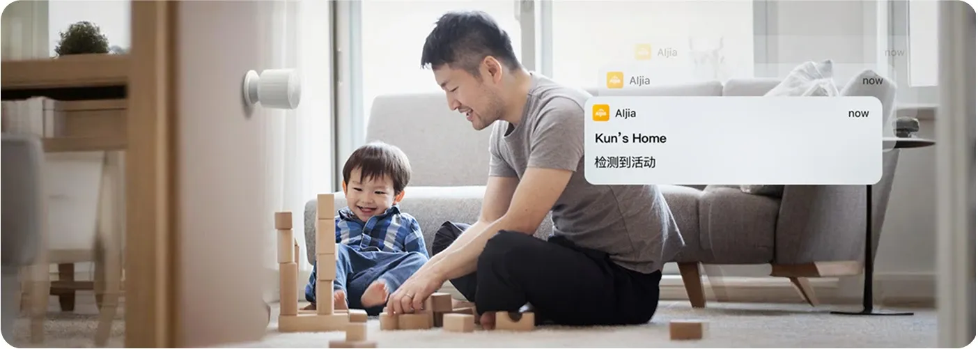 AIjia的人体智能侦测功能可以侦测到最轻微的动作。无需任何安装工具,把它放在你需要的任何地方。