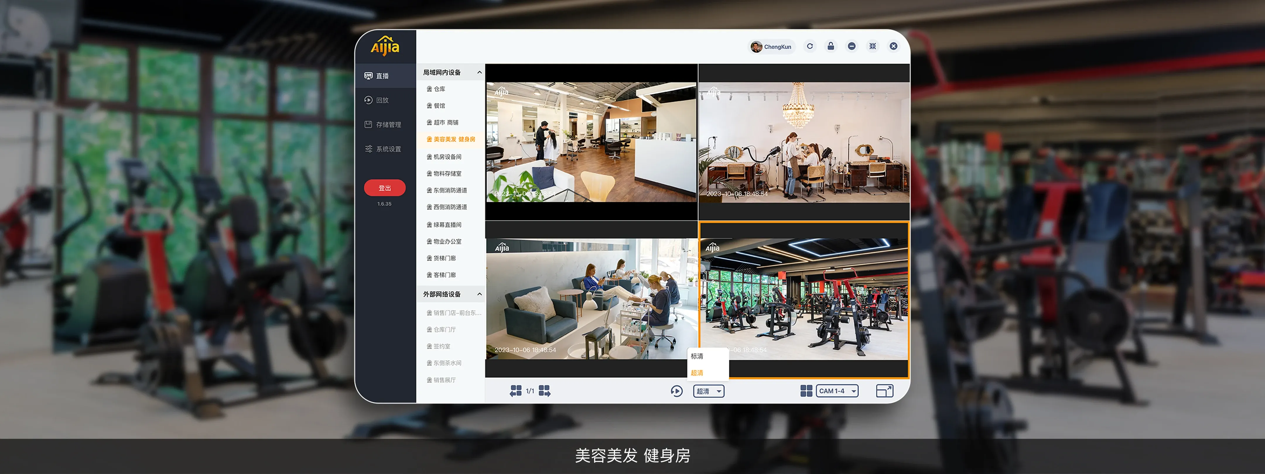 实时直播分屏分屏模式同时显示多个AIjia摄像头的实时画面