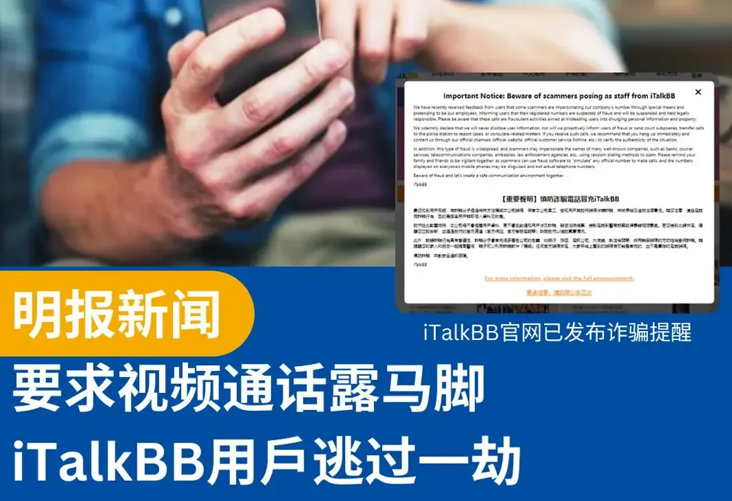 iTalkBB发出警告 提醒用户警惕假冒电话诈骗