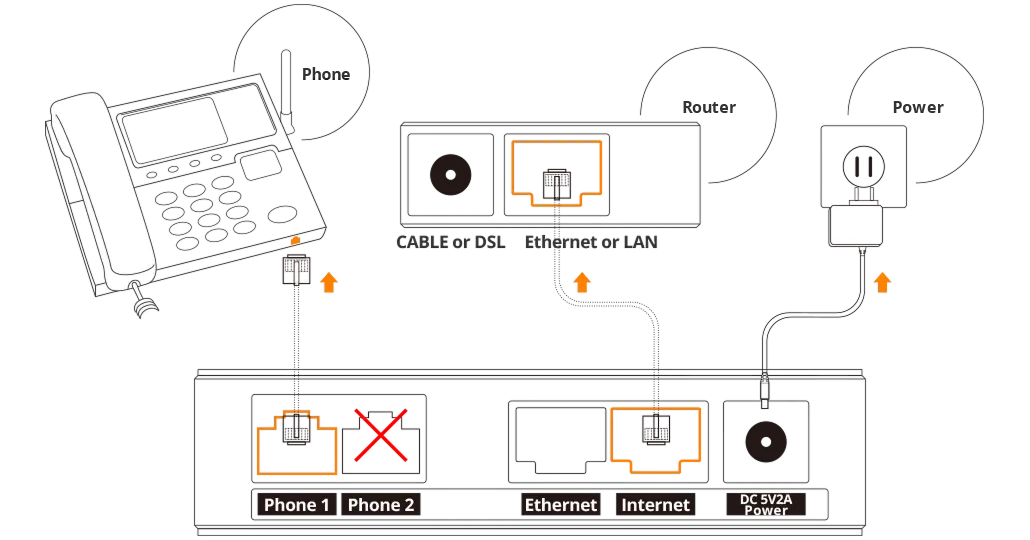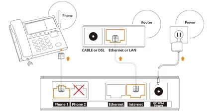 将iTalkBB电话盒子通过网线接入路由器。再将电话座机与iTalkBB电话盒子连接,即安装完成。