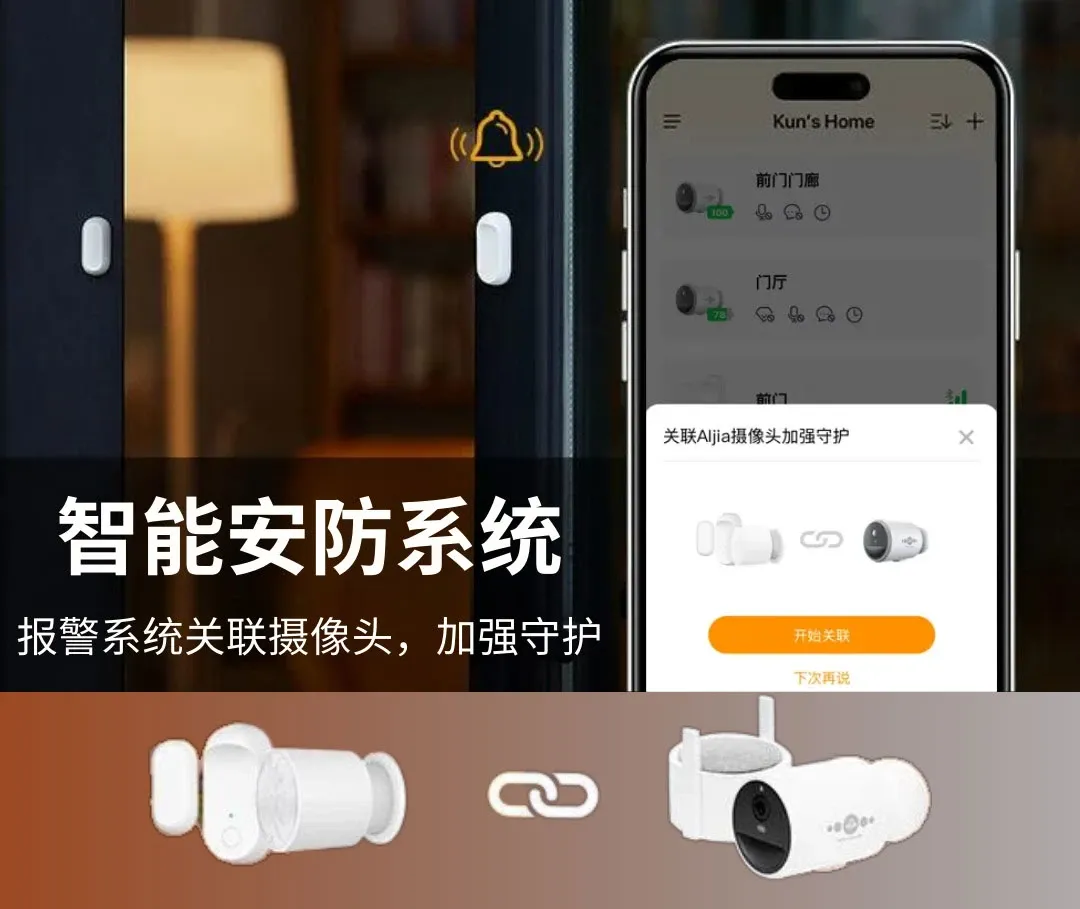 3、两者搭配使用,即可实现智能安防系统全部功能: