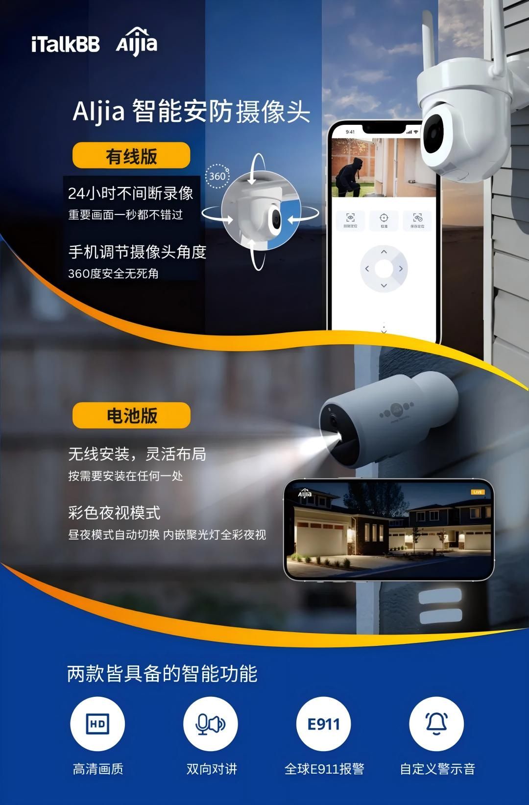 *智能安防摄像头现首月$4.99/月,原价为$13.99/月,iTalkBB客户享$9.99/月。申请成为iTalkBB客户后,即送智能报警系统(门窗感应器套装)首年免费使用,原价为$9.99/月。优惠受条款及细则约束,iTalkBB保留最终决定权。