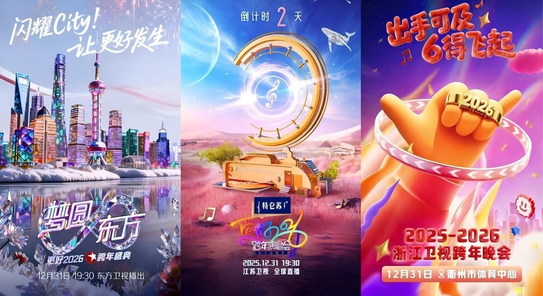 上海东方卫视、江苏卫视、浙江卫视跨年晚会即将上线!