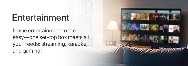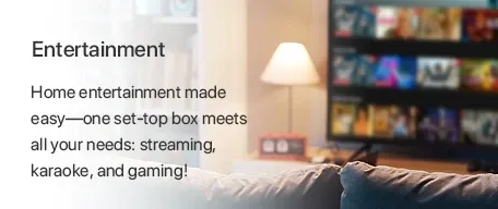 Home Entertainment Box:One set-top box fulfills all three wishes: 'Stream Dramas', 'Sing Karaoke', 'Play Games'.New gaming feature added to the Chinese TV Box!Mahjong, Gomoku, Dou Dizhu, Chinese Chess, with more mini-games coming soon......