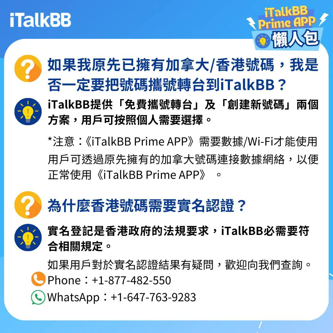 iTalkBB Prime APP 香港號碼計劃專為港人而設