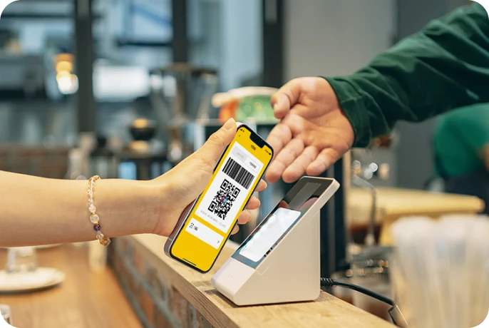 Scan to pay3,4At merchants where the UnionPay QR code logo is displayed, simply open the Prime App and scan their QR code to complete your payment in 1 - 3 seconds.